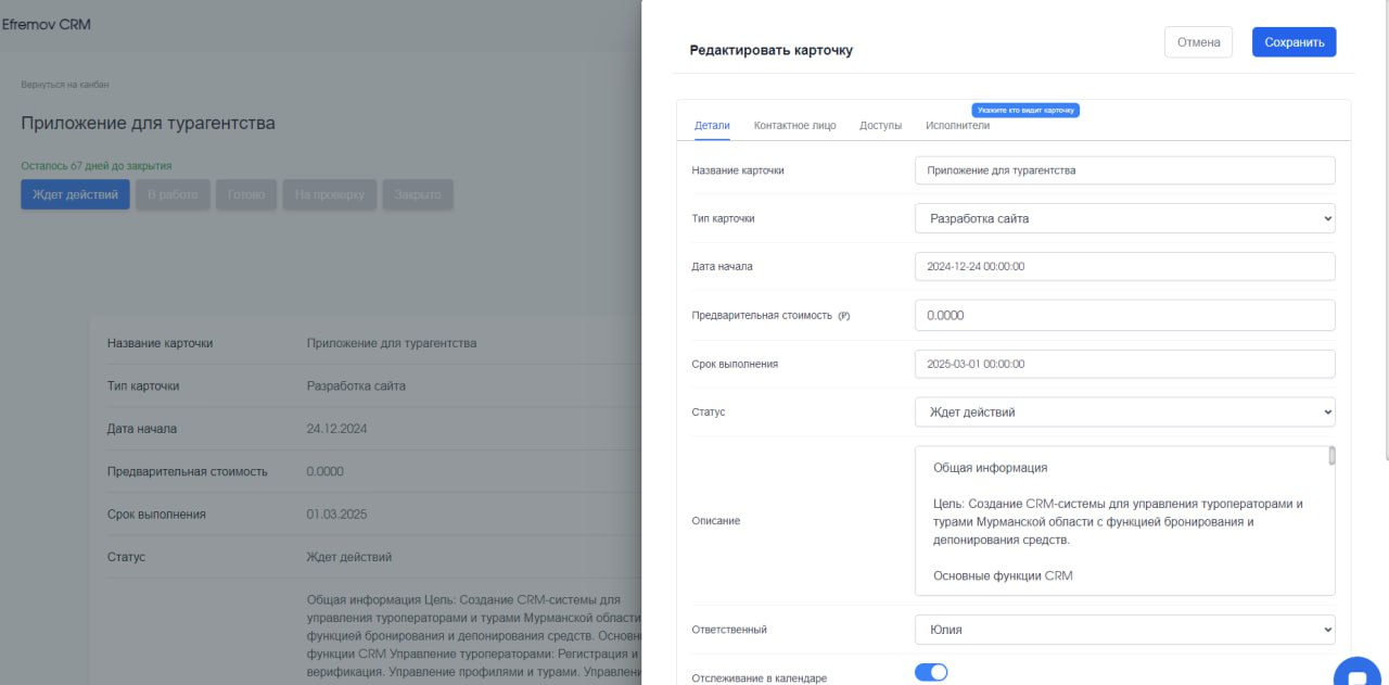 Учет клиентов и сделок — ведите детальный учет взаимодействий с клиентами и сделок, чтобы улучшить управление бизнесом.